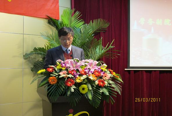 会上,周建江院长做了热情洋溢的讲话。他代表学院向圆满完成学业的研究生们表示热烈的祝贺,向为培养研究生成长成才而倾注心血和汗水的全体导师们表示衷心的感谢,并对即将走进社会、走上工作岗位的研究生们寄予了厚望,他希望同学们能做到“学而不知,不断创新”、“坚定理想,完善人格”、“自强不息,永葆激情”。毕业生代表给学院献礼更是将此次典礼推向了高潮。最后,周院长为每一位毕业生拨流苏、授学位,履行了神圣庄重的学位授予仪式。毕业典礼在师生们的合影与惜别之情中落下帷幕。