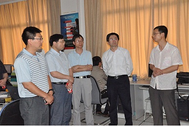 刘选民院长一行在常务副院长周建江的陪同下参观了学院DSP实验室和微波光子学实验室。