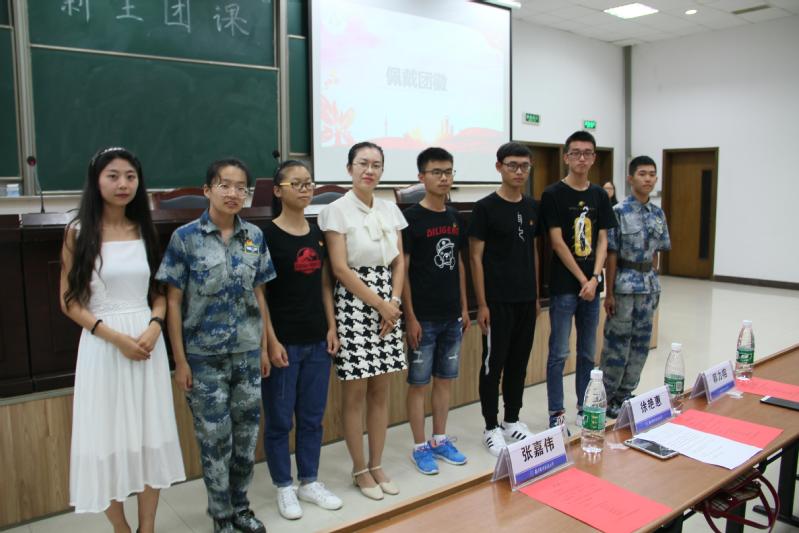 9月14日晚6:30, 91直播 2018级新生第一次团课在D1213教室顺利召开。出席本次活动的有 91直播 团委书记徐艳惠老师、2018级学生辅导员郭力榕老师和2015级优秀团员代表张嘉伟。