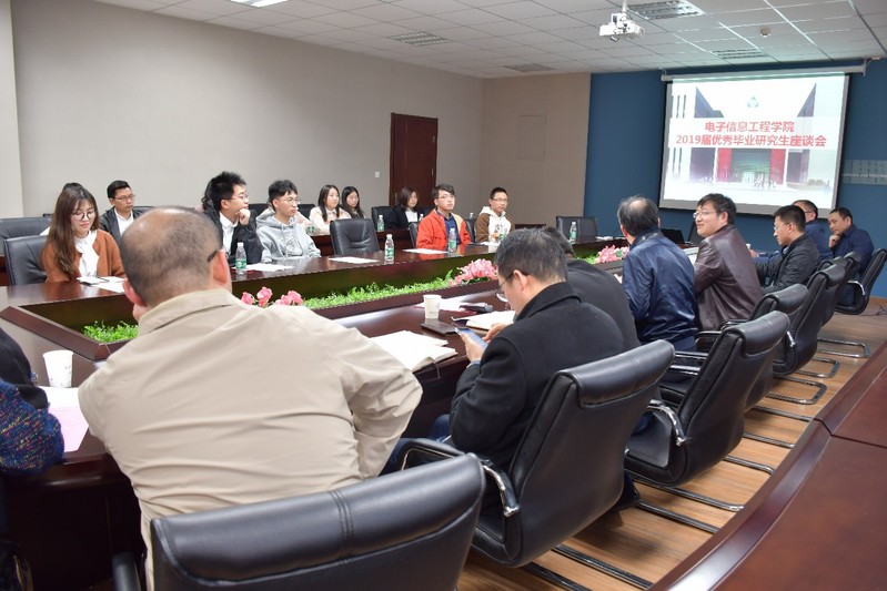 4月11日下午,91直播 召开2019届优秀毕业研究生座谈会。参加此次座谈会的有学院党委书记聂东林,学院常务副院长吴启晖,学院副院长刘伟强,学院党委副书记黄彬,学院院长助理张小飞,学院电子科学与技术系主任刘冰,学院电子科学与技术系副主任牛臻弋,学院信息与通信工程系主任夏伟杰,学院信息与通信工程系教师朱钢,学院团委书记徐艳惠,学院毕业班辅导员李萍,以及14名优秀学生代表。