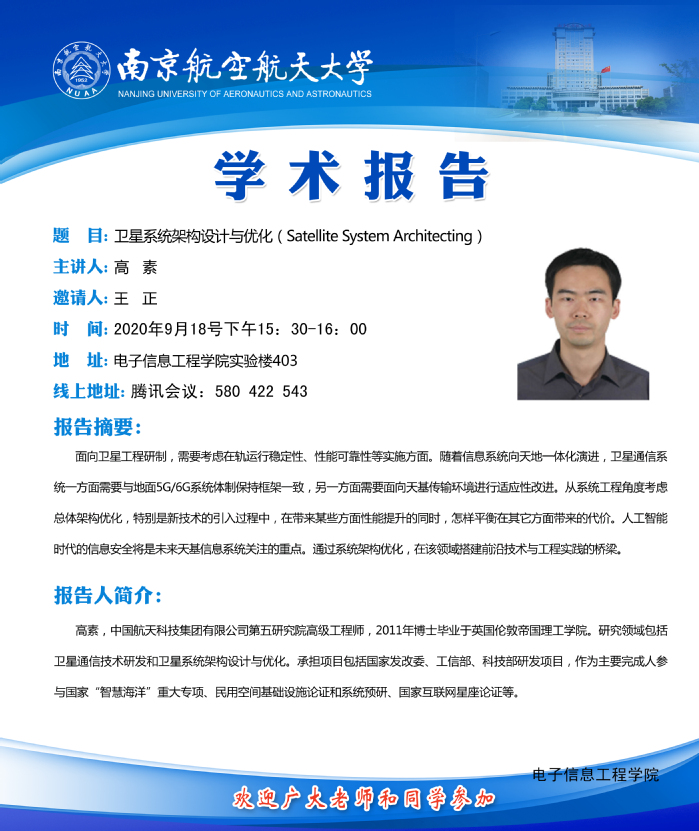 学术报告——卫星系统架构设计与优化(Satellite System Architecting)