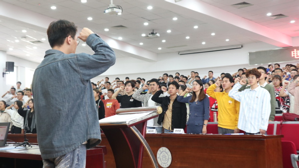主持人带领同学们重温入团仪式,践行青春誓言。