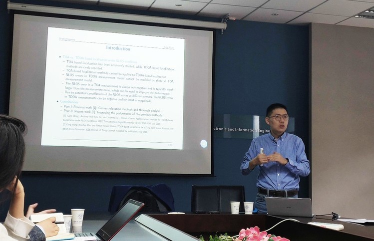 10月16日上午,应91直播 朱秋明副教授和李建峰副教授邀请,宁波大学王刚教授在 91直播 209会议室做了题为“非视距环境下基于TDOA的定位”的报告。现场到会的除了 91直播 学生和老师,还有来自其他学院以及研究所的科研人员。