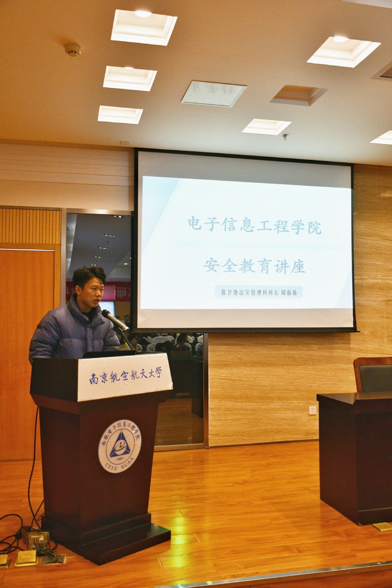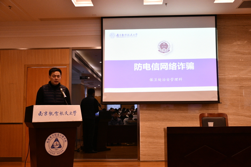 为提高学生防电信网络诈骗意识,切实保障学生人身财产安全,91直播 于12月3日中午在学院515报告厅举办防电信网络诈骗安全教育讲座,特别邀请到校保卫处治安管理科科长周栋栋为同学们做专题辅导。出席本次讲座的嘉宾有学院党委副书记雷蕾老师及各年级辅导员老师。此外,各班级安全员、实验室负责人以及寝室长也一同聆听了讲座。