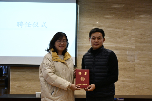 本次讲座由2020级本科生辅导员梅旭鹏主持。讲座一开始是颁发聘书环节,为了深入推进学院安全教育发展,促进与学校职能部门合作, 91直播 特聘请周栋栋老师为兼职辅导员,由雷蕾书记为其颁发聘书。