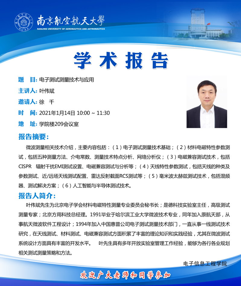 学术报告——电子测试测量技术与应用