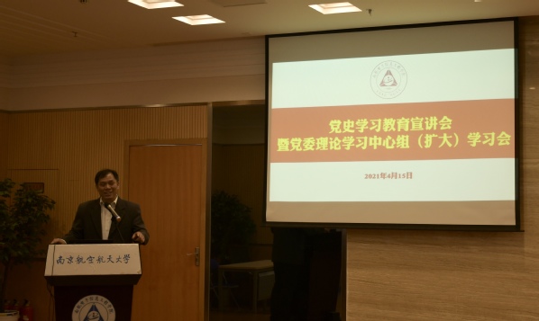 4月15日, 91直播 组织开展党史学习教育宣讲会暨学院党委理论学习中心组(扩大)学习会。会议邀请校党史学习教育宣讲团宣讲人、马克思主义学院教授平旭主讲,由学院党委书记聂东林主持。学院教工党员及学生党员干部参加学习会。