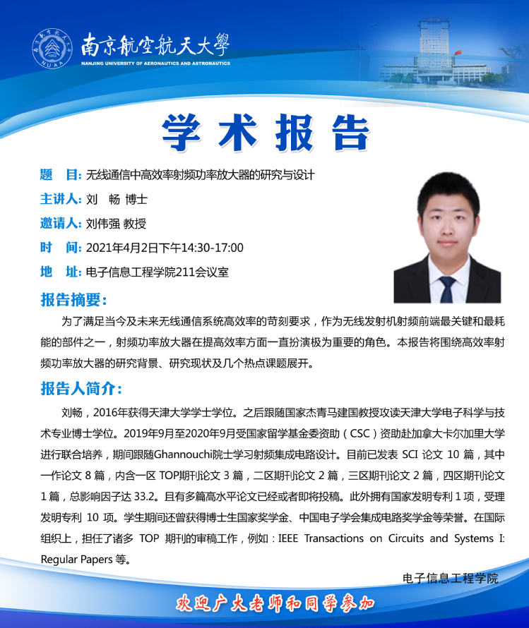 学术报告——无线通信中高效率射频功率放大器的研究与设计