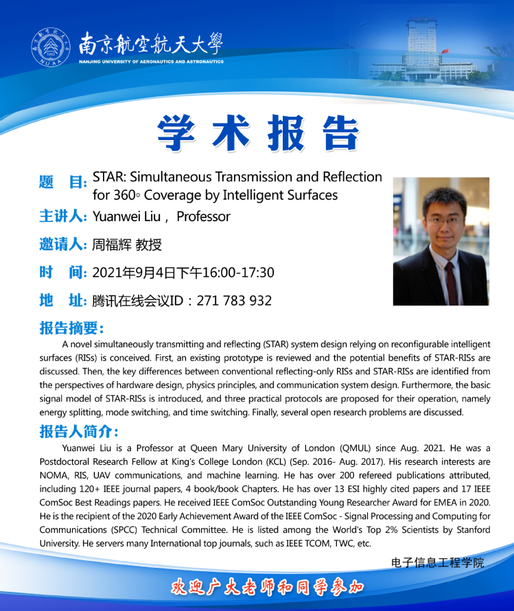 学术交流——STAR: Simultaneous Transmission and Reflection for 360◦ Coverage by Intelligent Surfaces