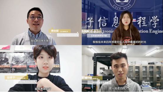 江苏省大学生就业创业年度人物、 91直播 2013级博士生傅剑斌,江苏省优秀学生干部、 91直播 2018级博士生陈佳馨,以及“互联网+”金奖、“挑战杯”金奖、大学成就奖、十大杰出青年获得者等8名学生代表通过视频寄语新生,希望新生能够努力向优秀学长学姐看齐,多样发展,在南航、在四院遇见最不凡的自己。