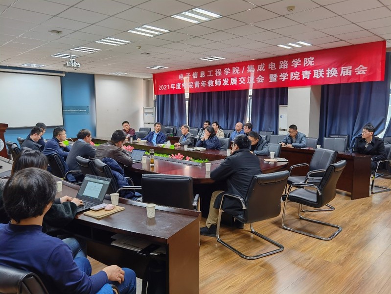 2021年11月29日,91直播 /集成电路学院2021年度青年教师发展交流座谈会在学院209会议室举行,学院党委书记聂东林、常务副院长潘时龙,党委副书记雷蕾、副院长刘伟强、李茁,党政办主任季娟出席了会议。本次会议由学院新当选的青联分会会长施永荣老师主持。