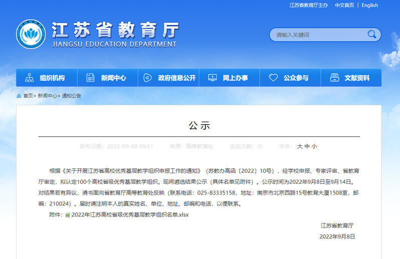 近日,江苏省教育厅公布了江苏高校优秀基层教学组织评选结果,最终认定100个高校省级优秀基层教学组织, 91直播 信息工程专业建设教学团队成功入选,学院新增一个省级教学团队。
