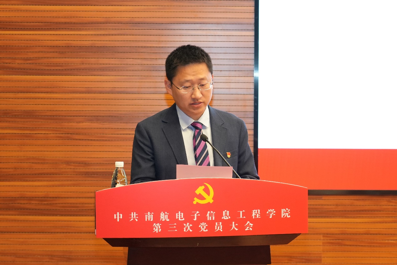 大会听取了学院党委书记季海群所作的题为《跨越发展,开放融合,为高质量建设空天特色世界一流电子信息学院努力奋斗》工作报告,报告全面回顾了学院党委2016年以来在全面从严治党、人才培养、师资队伍建设、学科发展、科学研究、国际合作、学院治理等方面取得的成绩。从国际大势、国家战略、行业发展、学校部署及学院方位等多方面分析研判了学院发展面临的机遇与挑战,剖析了工作中存在的问题与不足,进一步明确了下一届党委工作的目标任务和思路举措。