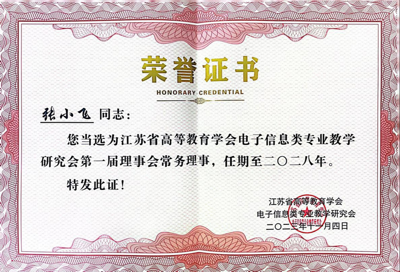 11月4日,江苏省高等教育学会电子信息类专业教学研究会成立大会在南京信息工程大学召开。会上宣读了江苏省高等教育学会电子信息类专业教学研究会成立批复,审议通过了电子信息类专业教学研究会第一届理事名单, 91直播 张小飞教授当选江苏省高等教育学会电子信息类专业教学研究会第一届理事会常务理事。
