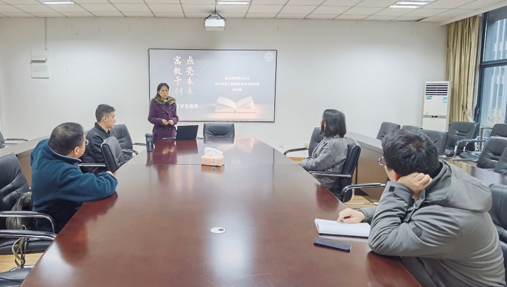 2023年11月30日 ,91直播 /集成电路学院的“乐享”专项活动在学院楼209会议室顺利开展,此次活动的主题是“乐享学生指导”。宋晓勤老师做了题为“寓教于创,点亮未来”的报告,胡志忠、杨阳、袁伟浩和张璐等老师参加了本次活动。