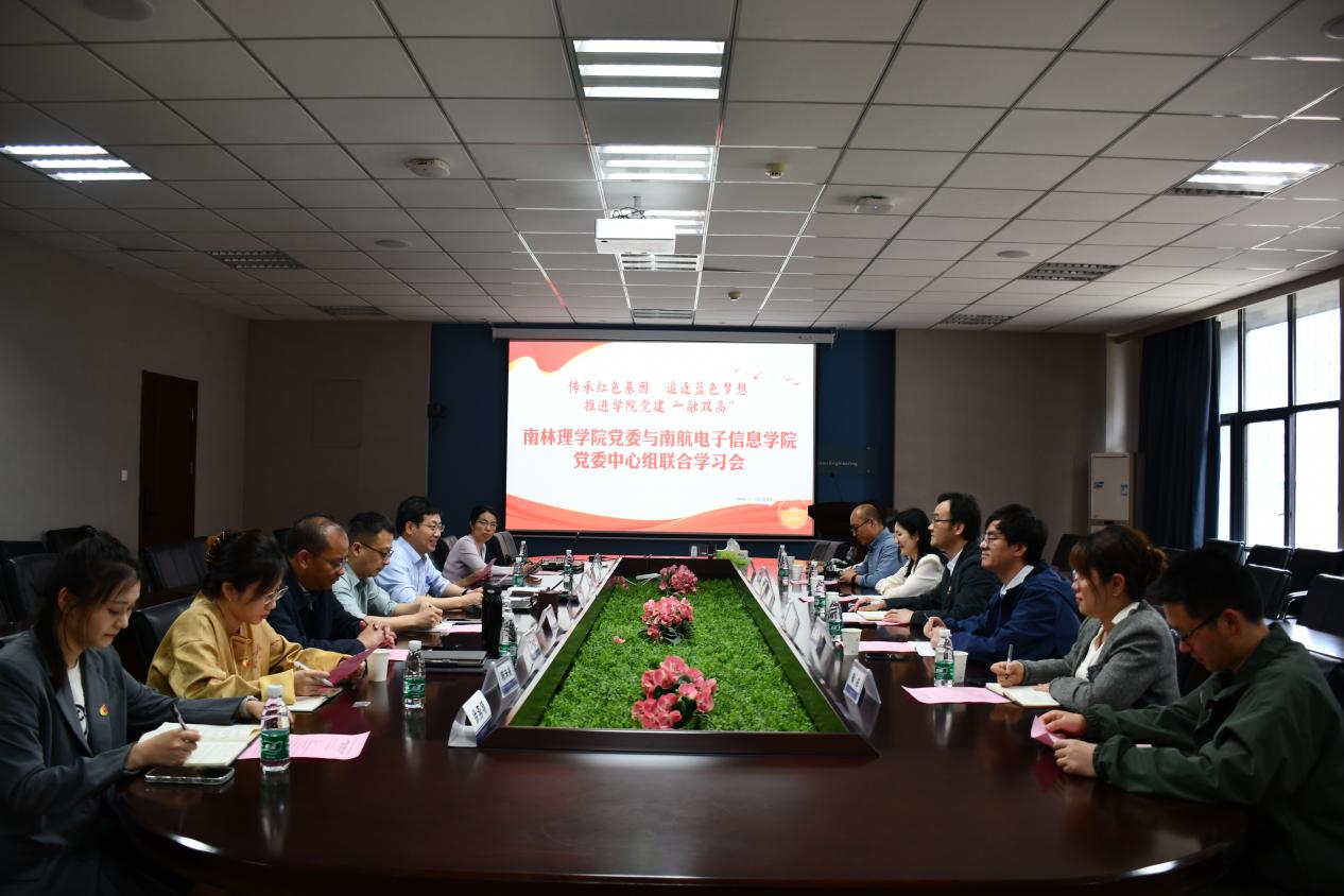4月16日,南京林业大学理学院和91直播 电子信息学院开展党委理论中心组联学,学习主题是学习习近平总书记在湖南第一师范学院考察时的重要讲话精神和全国两会政府工作报告中关于深入实施科教兴国战略的重要论述,结合学院发展实际情况,传承红色基因、追逐蓝色梦想,推进学院党建“一融双高”。南林理学院党委理论学习中心组成员、南航电子信息学院党委理论学习中心组成员参加了会议,会议由91直播 党委书记季海群主持。