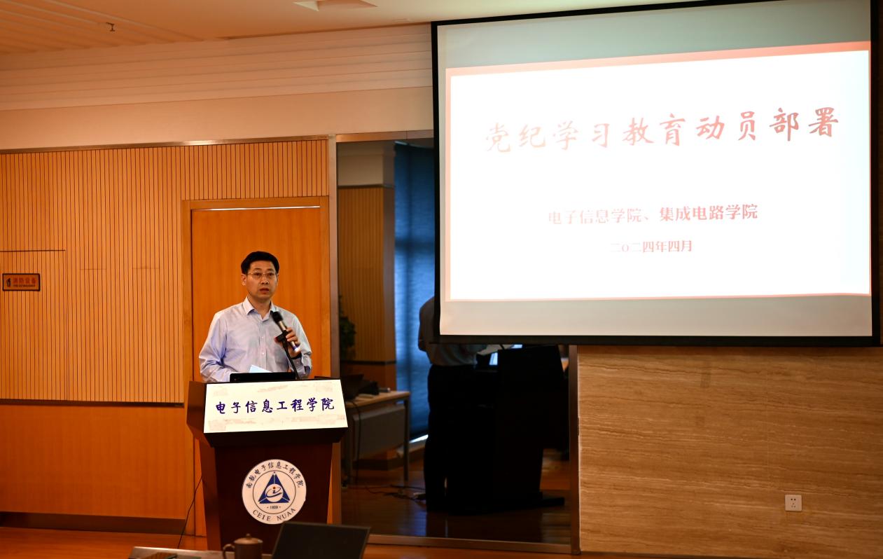 在电子信息学院楼515报告厅召开党纪学习教育动员部署会,全面动员部署党纪学习教育工作,学院班子成员、党委委员、党支部书记及全体党员参加,会议由学院党委书记季海群主持。
