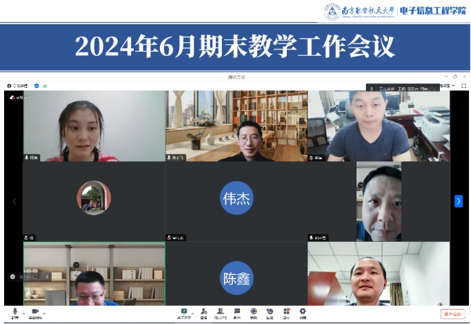 为齐头推进现阶段各项教学重点工作、确保期末教学平稳运行,6月14日下午,电子信息学院副院长张小飞带领本科教学工作团队开展学期末教学工作会议。院长助理夏伟杰、电子科学与技术系主任黄正宇、电子科学与技术系副主任王毅、电子信息科学与技术专业执行负责人胡志忠、信息工程专业执行负责人周博、实践教育中心副主任邱旦峰、教师代表陈鑫及学院教学办成员参与此次会议。