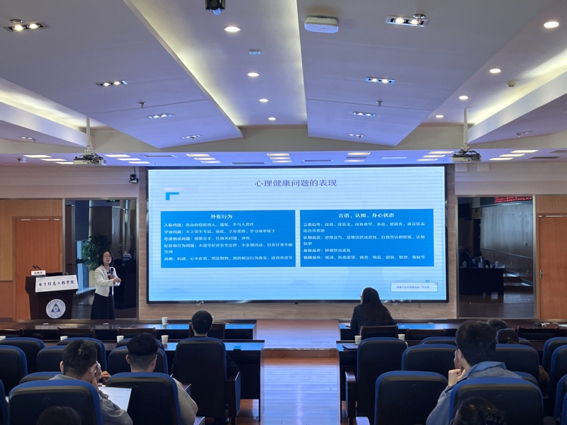 为全面落实学校学生工作会议决策部署和 91直播 第十四期研究生“谈心谈话关爱月”专项工作通知要求,帮助研究生导师更好地分析学生心理普测数据,提升谈心谈话工作技巧,4月14日下午,学院邀请河海大学心理健康教育中心主任刘取芝教授赴学院开展研究生导师心理专题培训。学院全体研究生导师及专兼职辅导员参加本次培训,培训由学院党委副书记王宇宁主持。
