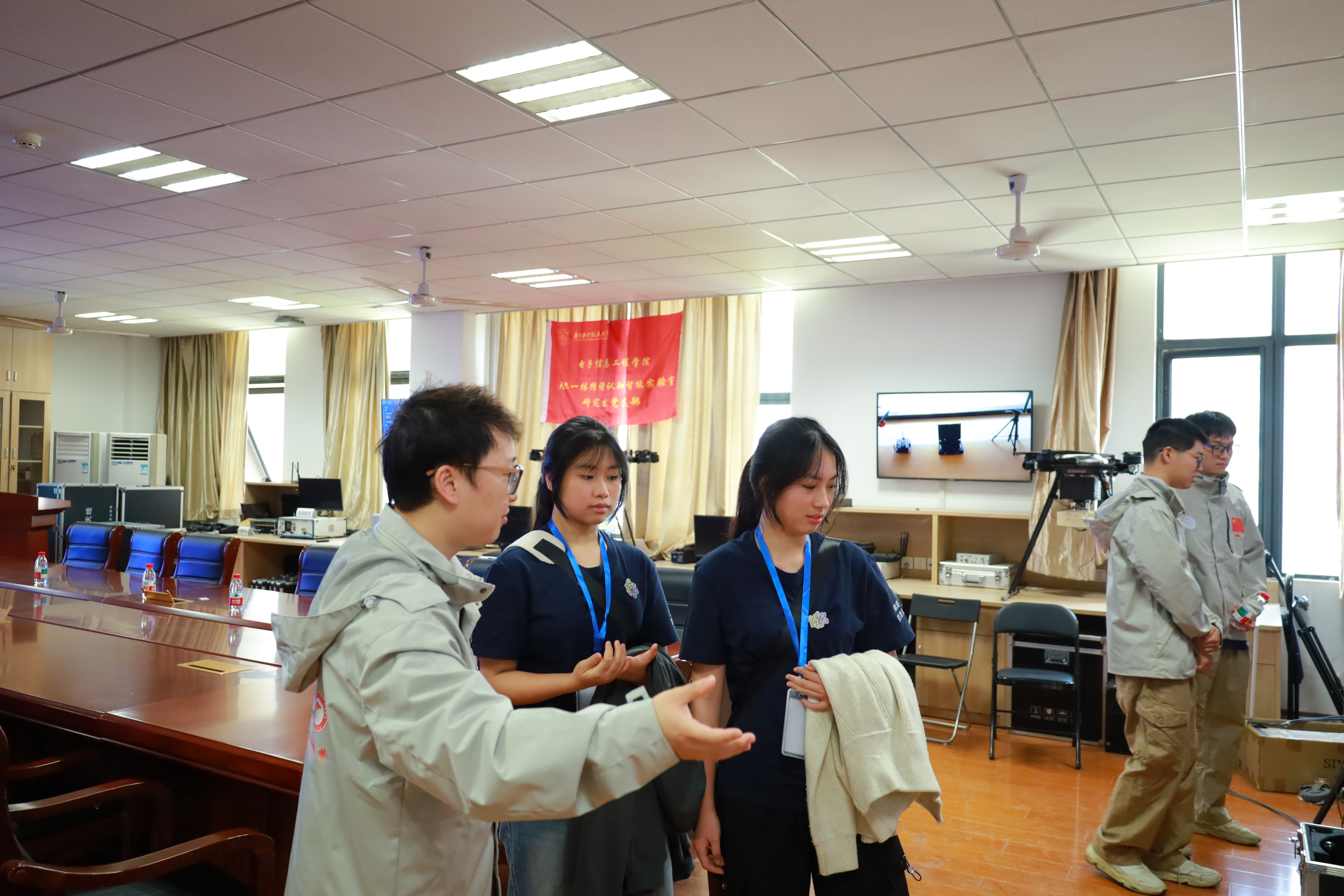 支部书记徐睿带领参观者深入了解实验室的研究方向和技术亮点。他着重阐释了电磁频谱空间认知动态系统的创新应用,让大家对该系统在实际中的应用和发展潜力有了初步认识。唐王昊深入剖析了无人机载辐射源测向定位仪器的前沿技术,将复杂的专业内容以通俗易懂的方式呈现给参观者,为大家打开了一扇通往前沿科技的窗口。