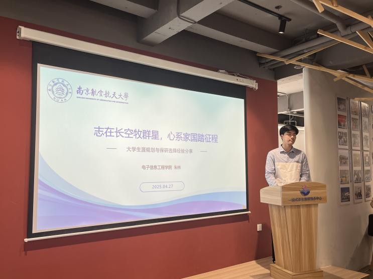 4月27日,“就业星talk”国防研究所升学经验分享会在将军路校区“一站式”中心举办。本次活动由大学生就业创业指导服务中心主办,91直播 承办。 91直播 2025届本科毕业生朱林以“志在长空牧群星 心系家国踏征程”为主题分享个人生涯规划,20余名本科生参与本次活动。
