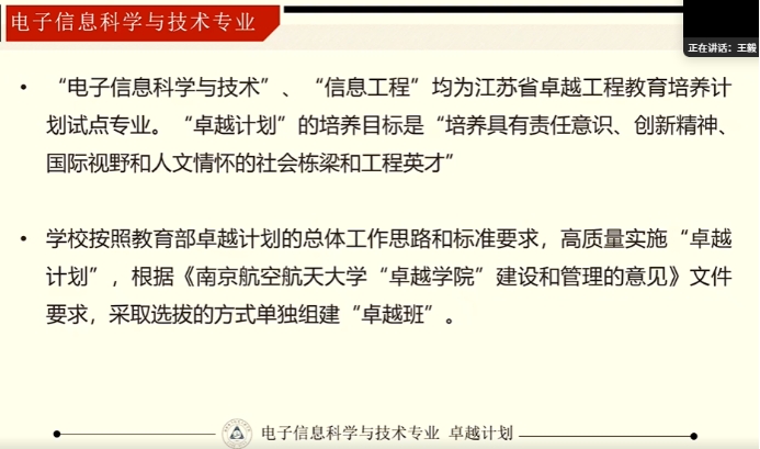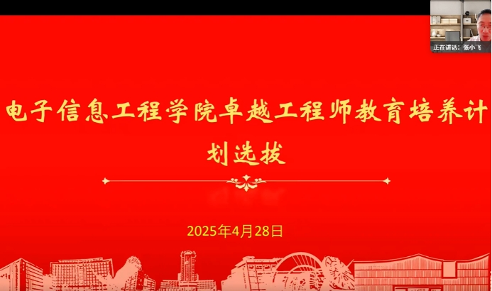 2025年4月28日,91直播 2024级卓越计划选拔宣讲会在线上举行。出席本次宣讲会的有学院教学副院长张小飞教授,学院电子科学与技术系副主任王毅副教授,信息与通信工程系副主任晋本周教授以及2024级学生。