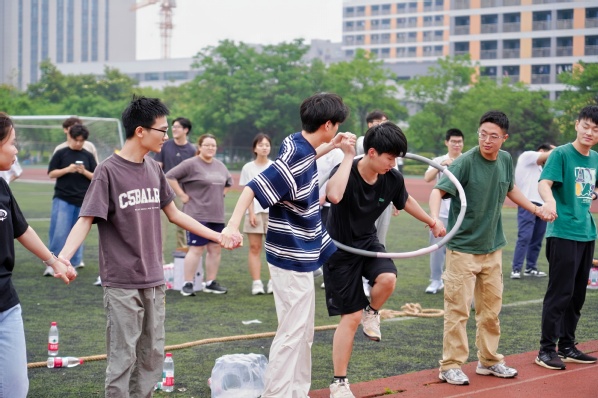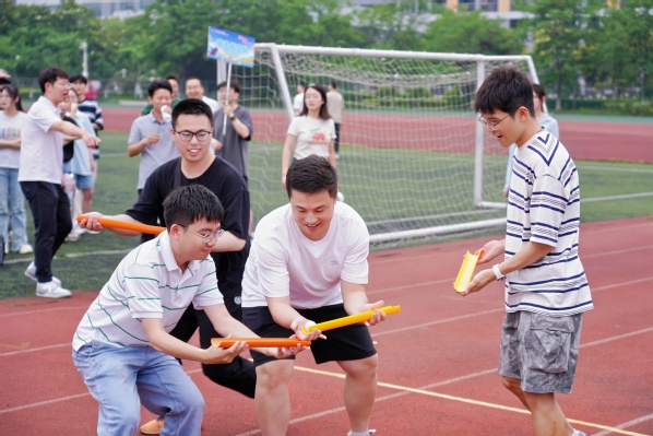 比赛开始前,王健同学代表全体参赛师生宣誓,焦柯源同学带领全体师生热身,为比赛做好准备。随后,六支团队于“珠行千里”“四人五足”“穿越呼啦圈”“趣味接力跑”和“合作拔河”等项目接连开展,师生们稳扎稳打的竞技实力与奋勇拼搏的精神风貌,为运动会注入蓬勃生机。