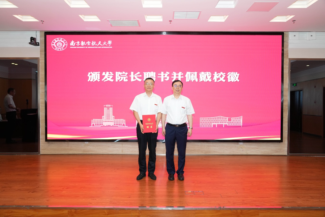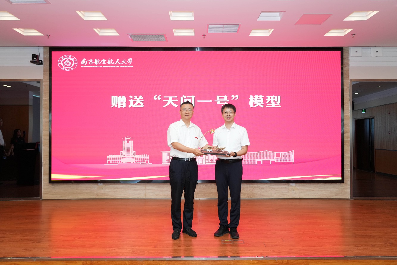 仪式大会中,姜斌为孙泽洲颁发91直播 院长聘书,并为其佩戴校徽。孙泽洲向学院赠送天问一号火星探测器模型,校长助理、91直播 常务副院长潘时龙代表学院接受这份承载着航天荣耀与校友深情的礼物。
