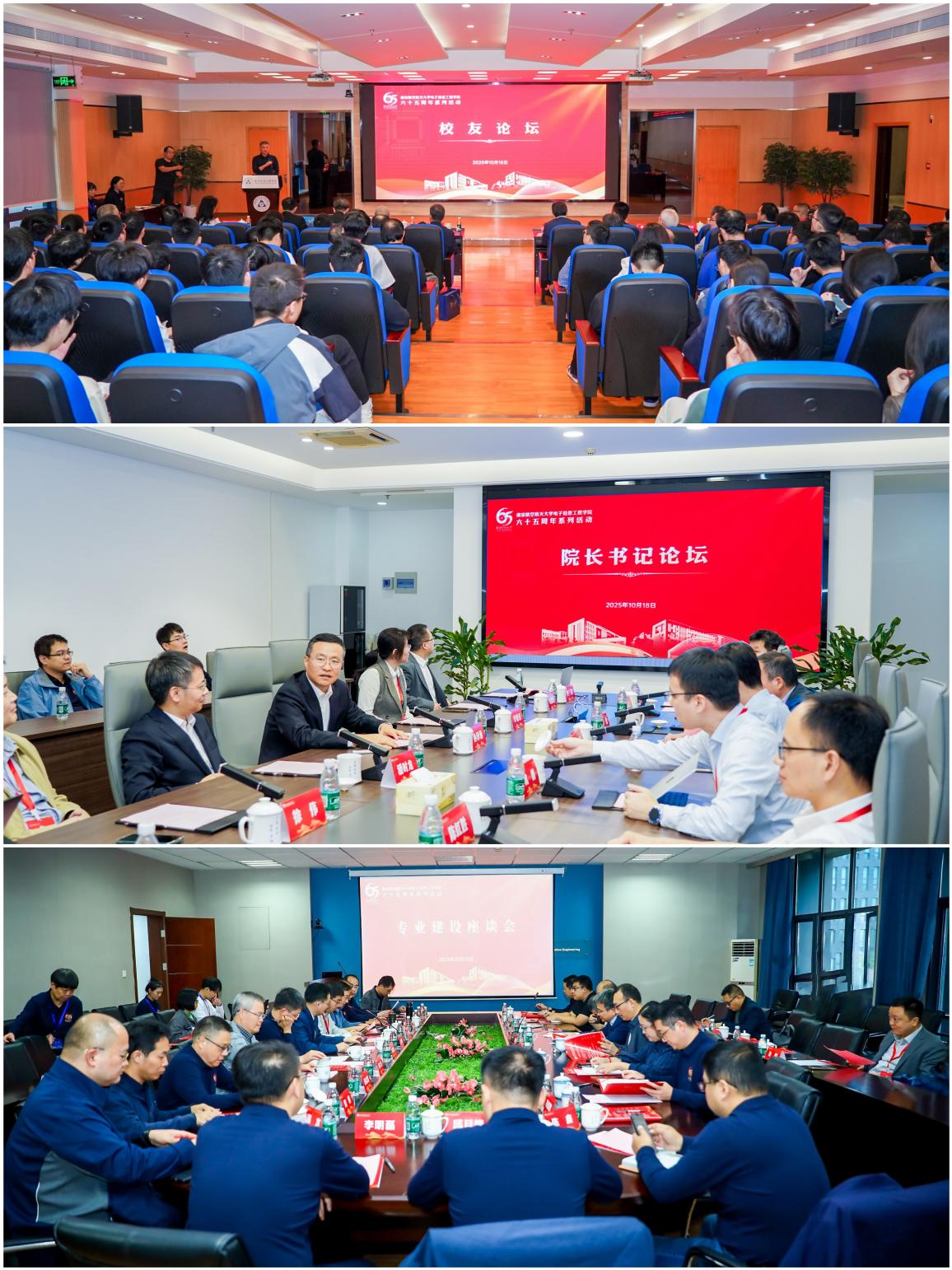 当日,学院还举行了电子信息类院长/书记论坛、校友论坛及电子信息类专业建设座谈会。来自全国知名高校电子信息类学院的院长、书记,海内外校友代表及行业专家齐聚一堂,围绕学科建设创新、人才培养改革、产学研协同发展等议题深入交流,为学院未来发展汇聚智慧、凝聚共识,进一步拓宽了学院高质量发展的思路与路径。