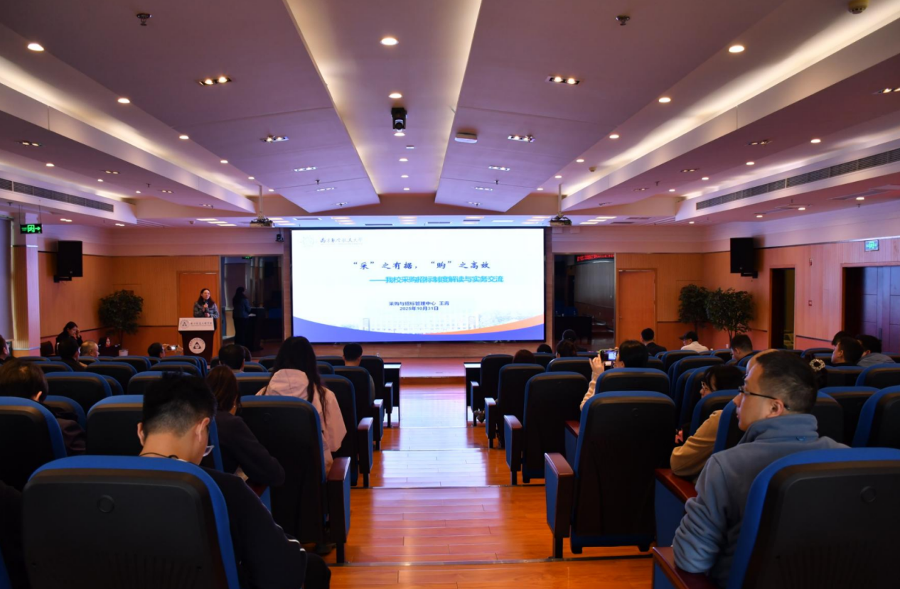 本次活动邀请学校采购与招标管理中心主任王霄作题为《“采”之有据,“购”之高效—— 91直播 采购招标制度解读与实务》的专题报告。报告从学校采购招标制度的出台背景、政策要点和操作实务三个方面展开,系统阐述了国家与学校层面采购法规的最新变化,详细梳理了采购流程规范和相关要求,并结合常见工作实例,剖析了采购招标各环节的注意事项与政策红线,为提升学校采购工作的规范性与效率提供了实用指导。