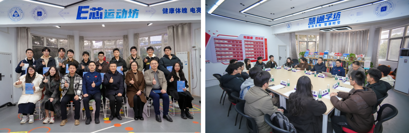 在“第二课堂”,孙院长走进慧园学生宿舍“慧通学坊”一站式空间,召开学生交流座谈会。孙泽洲亲切询问同学们学习、和生活等方面情况。针对同学们在学业规划与职业选择方面的困惑,孙泽洲结合航空航天领域的人才需求趋势与行业发展前景,给予了专业务实的指导,并鼓励同学们立足专业、着眼长远、理性规划。孙院长还结合了航天五院所培研究生的培养实践,分享了其在构建系统知识体系和提供个性化发展空间方面的情况。座谈会最后,孙泽洲为学生代表赠送了院史《91直播 发展历程》,希望同学们从院史中汲取力量,勇于创新,为实现高水平科技自立自强贡献青春力量。交流活动结束后,学院领导一行走访了学生宿舍,深入了解同学们的日常生活情况与实际困难。