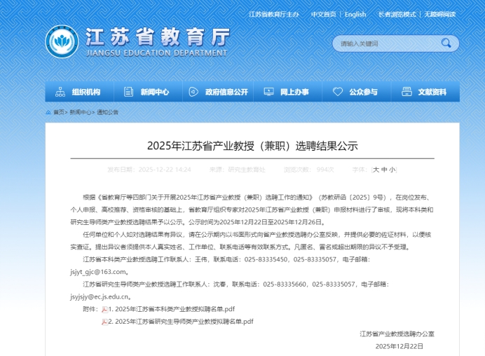 近日,江苏省产业教授选聘办公室公布了2025年江苏省产业教授(兼职)选聘结果,南航91直播 推荐的苏州六幺四信息科技有限责任公司总经理傅剑斌成功获批江苏省本科类产业教授。