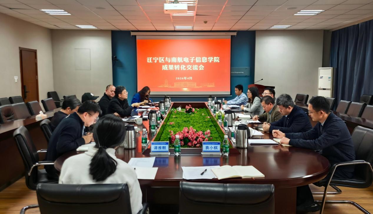 2026年4月17日,南京市信息通信产业团团长刘勇、江宁区科技局党组书记、局长龚轲、副局长王文娟及相关科室负责人来 91直播 开展成果转化交流活动,91直播 副院长朱岱寅、部分教师代表及科研办参加交流会。