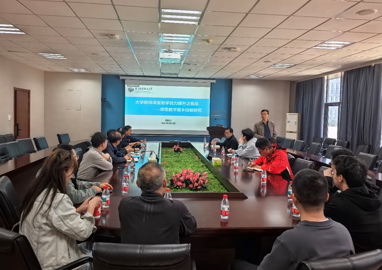 周建江教授以《大学教师课堂教学能力提升之我见——课堂教学基本技能研究》为题,紧扣高校教师教学核心素养,从课程遴选建设、课堂教学基本技能、课程思政融入实施三大维度,系统阐释了课堂教学设计、教学组织实施与教学质量优化的方法路径。在课程思政交流环节,周教授结合典型课堂授课案例视频进行现场点评剖析,并就教师普遍关注的教学难点、育人困惑等问题,与参会人员展开深入互动研讨。整场讲座立意高远、视野开阔,兼具理论深度与实践指导性,给出了可落地、可借鉴的实操举措,为学院深化教育教学改革、提升人才培养质量提供了有力指引。